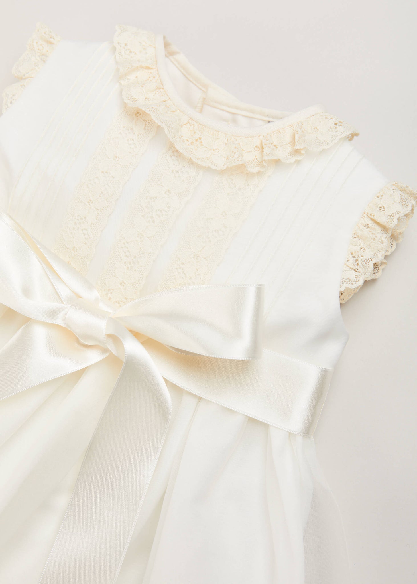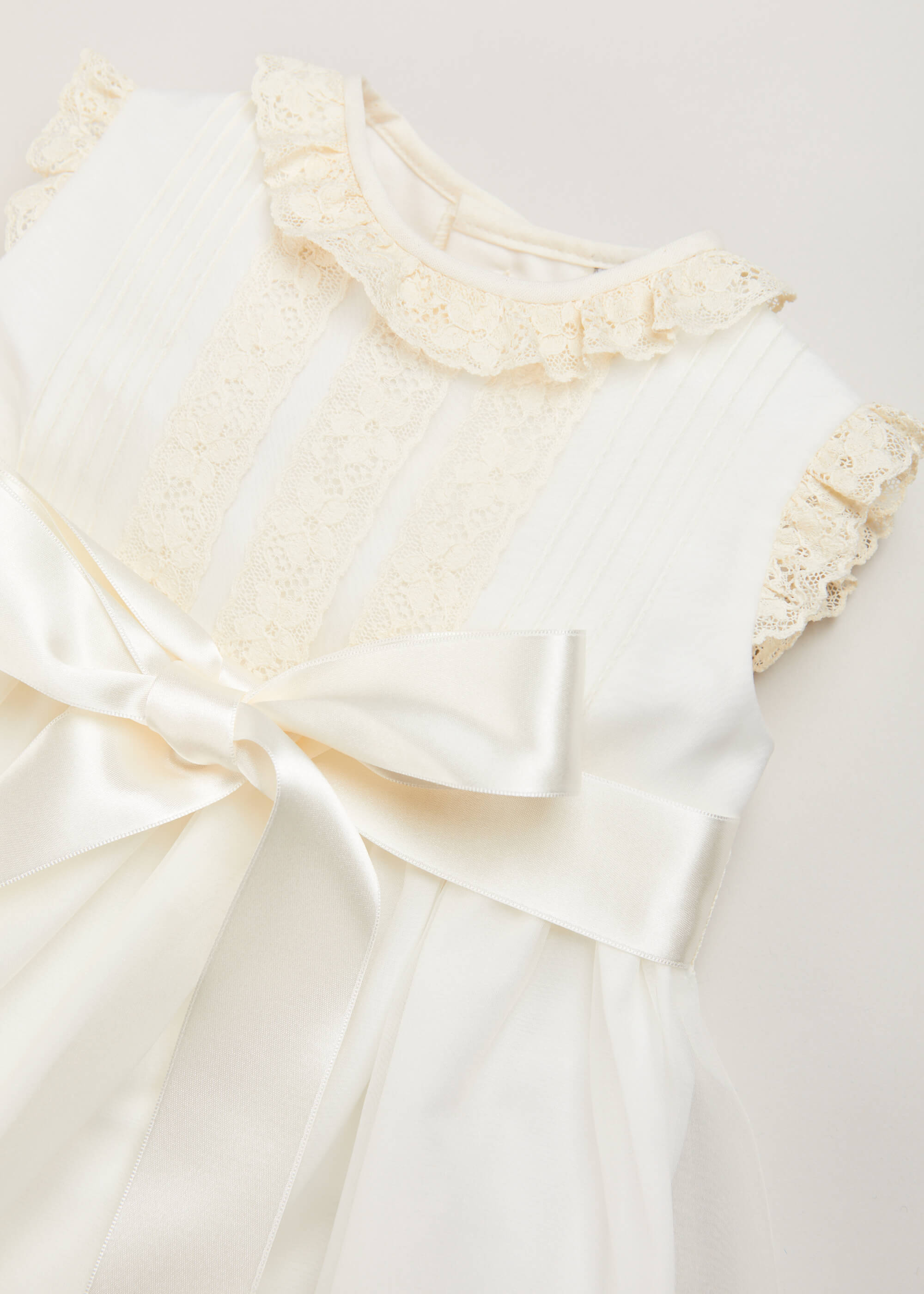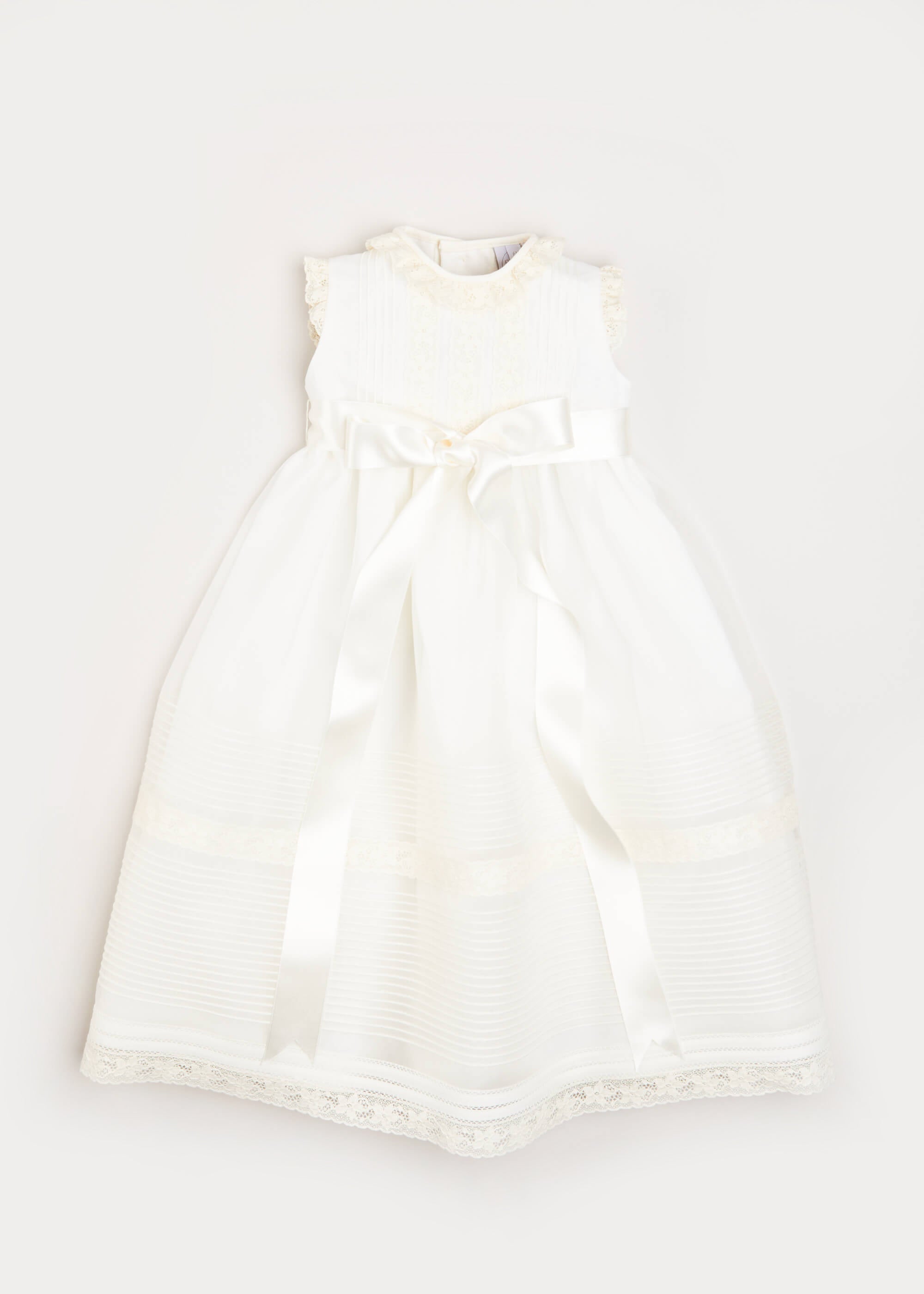 Presenting the Lace Trim Fine Pleated Gown in Ivory, the perfect choice for your little one’s christening or baptism. Designed for infants aged 6 to 12 months, this exquisite gown features delicate lace trim that adds a touch of vintage elegance, while the fine pleated fabric creates a graceful silhouette. The soft ivory hue symbolizes purity and innocence, making it an ideal selection for these sacred ceremonies. With its thoughtful design and attention to detail, this gown ensures your baby will look radiant on their special day.