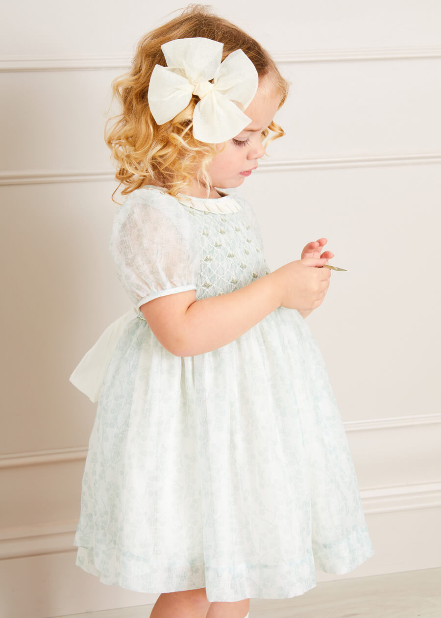 This Floral Party Dress marries the charm of floral patterns with the timeless elegance of hand smocked craftsmanship. Made for the most special occasions, this piece is designed in a Constance Floral Print with our signature hand smocking, using traditional techniques.