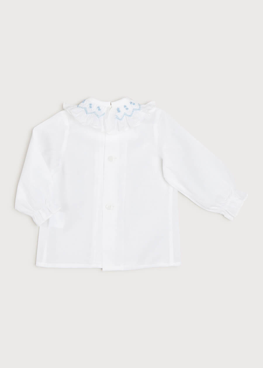 An essential item in any child's wardrobe, this long-sleeve blouse features a signature hand smocked collar in our bold floral print that is exclusive to Pepa London.