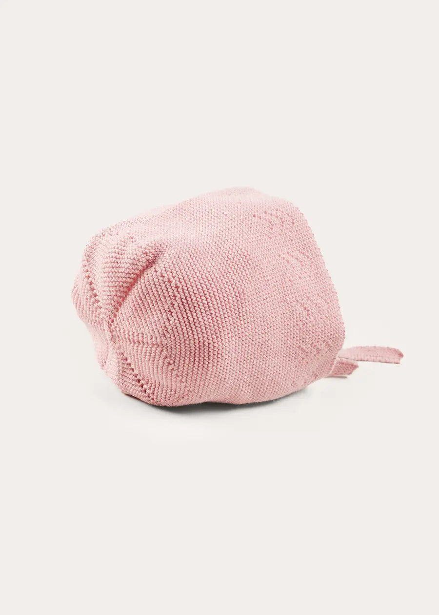 The Pink Openwork Knitted Bonnet is a delicate and breathable accessory for your newborn or baby, crafted from 100% cotton. Featuring an intricate openwork design, this bonnet combines comfort with a touch of timeless elegance. Perfect for everyday wear or special occasions, it adds a soft, refined finish to any outfit.
