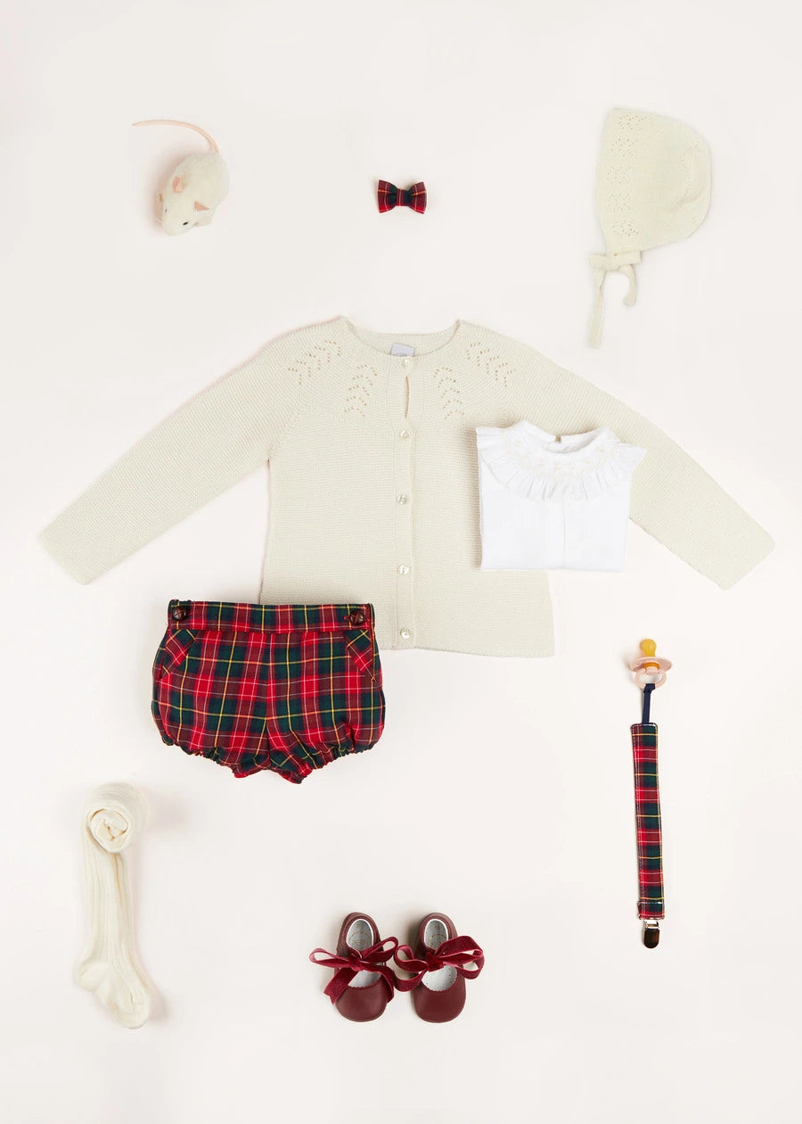 Keep little heads warm with this Baby Bonnet in Cream. It is made from 100% wool and has intricate openwork detailing along the front and around the back. Keep it secure with the ties that sit gently under the head.