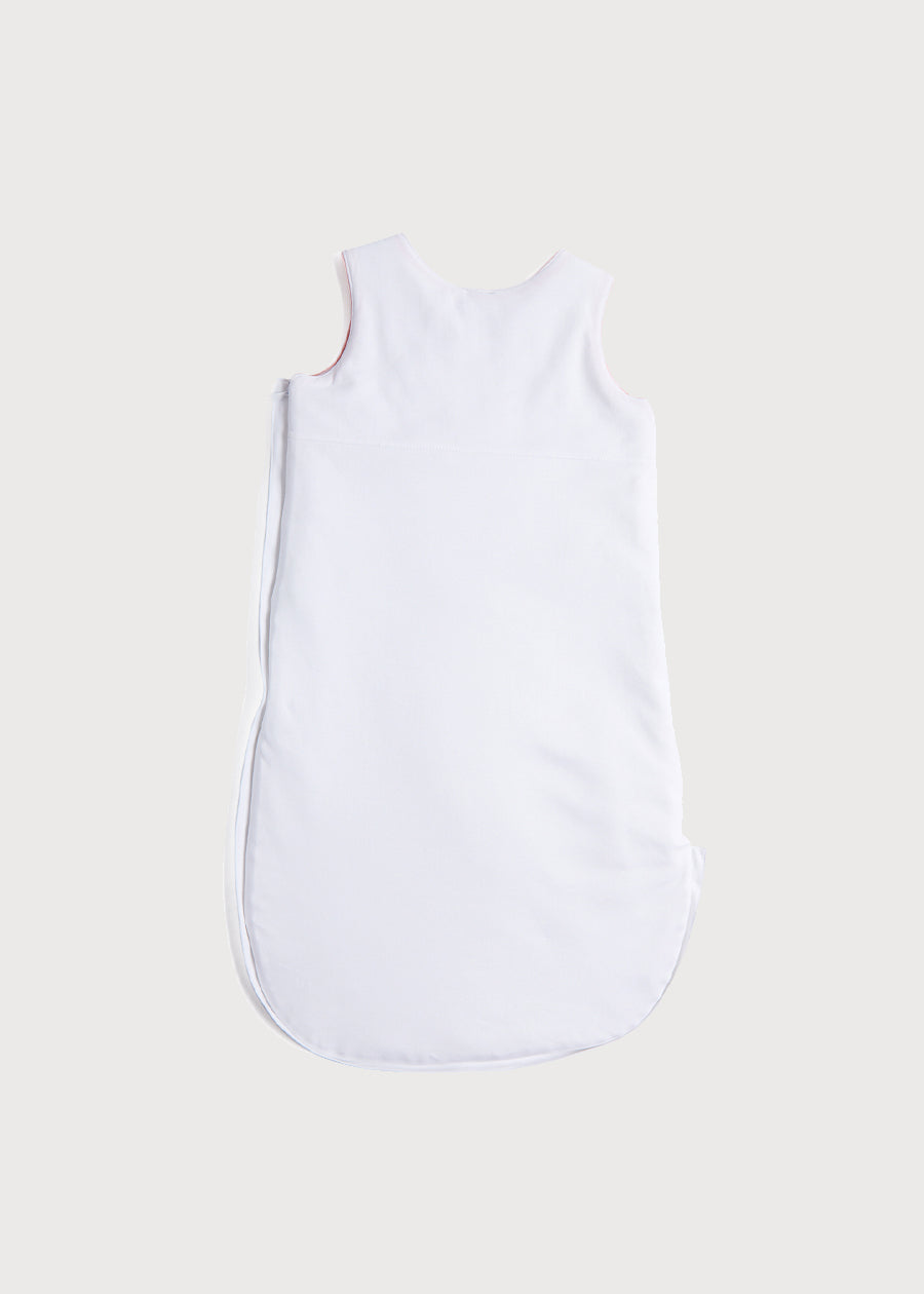 This 2.5 tog sleeping bag is cosy and soft with delicate hand smocked detailing across the front in pastel pink. Made from 100% cotton, finished with snap button fastenings on the shoulders for an easy and dreamless sleep for your little one.