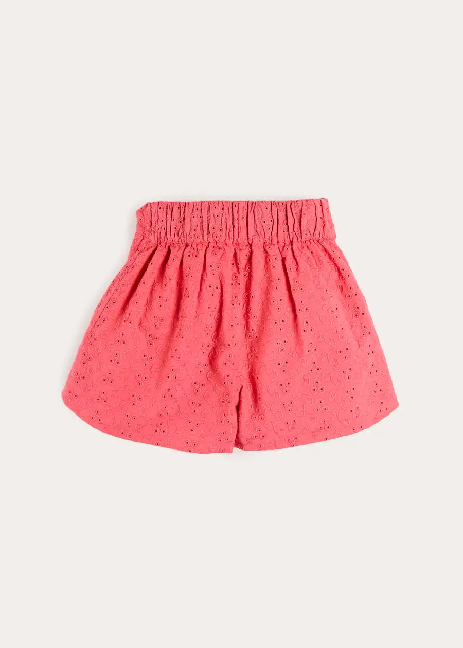 The Broderie Anglaise High Waisted Shorts in Strawberry are a quintessential Pepa London piece, crafted from 100% organic cotton for a soft, breathable feel. Designed with front button fastening and scallop edge detailing, these shorts feature an elasticated waistband at the back for comfort and easy dressing. Perfectly paired with the matching Broderie Anglaise Blouse, they create a timeless, British-inspired outfit that combines elegance, practicality, and refined charm for little girls.