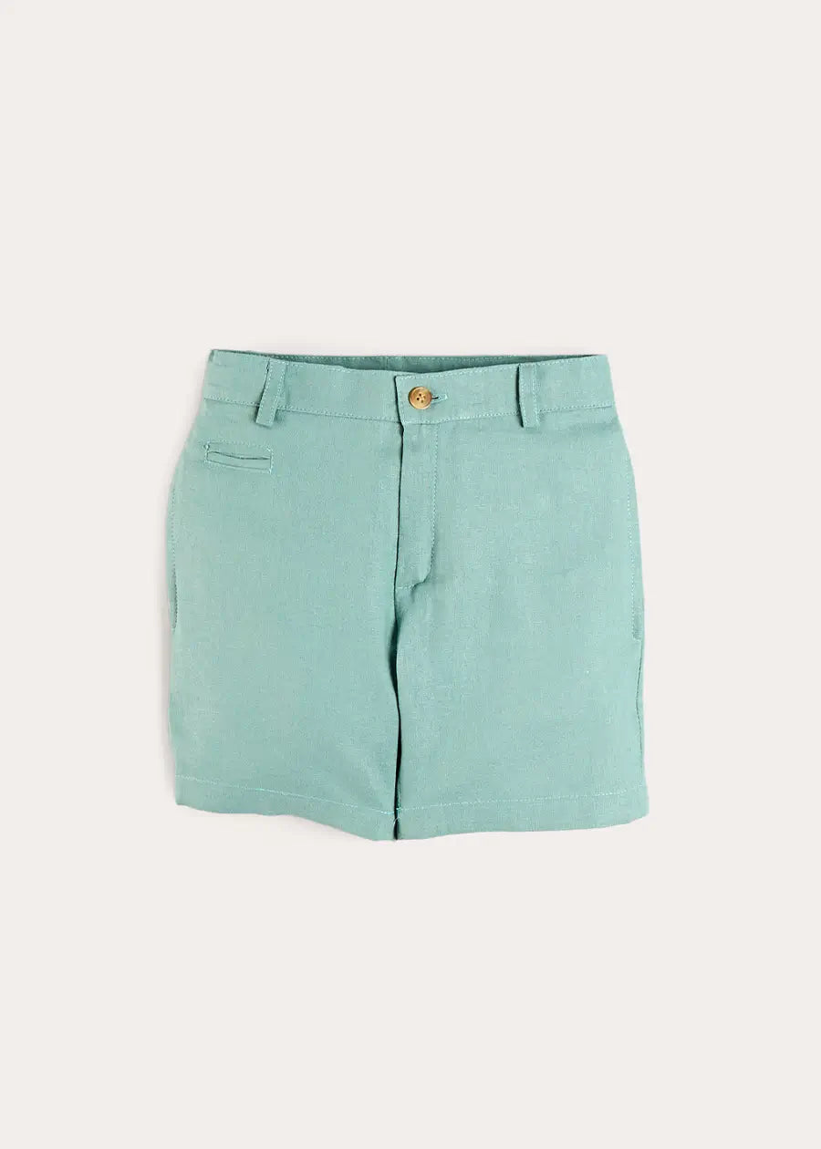 The Plain Tailored Shorts in Sage Green are a refined and versatile piece for children, crafted with Pepa London’s signature attention to detail. Designed in a classic tailored style, they feature front and back pockets and belt hoops for a polished finish. Perfect for pairing with a smart shirt or a casual top, these luxury children’s shorts offer effortless elegance and are a timeless wardrobe staple.